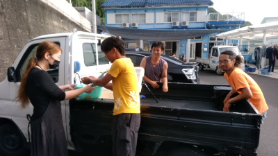 さて、今日もいただきました♪ ヤズ。 出勤前の4:30に集合して、釣りに行ってきたという3人さん。仕事もぼちぼち忙しくなってきたというのに、よくやります(^-^;。趣味と体力は関係ないのですかね(^-^;。奥に見えるのは、これまたレアキャラの大西君。以前パラディでダイブマスターまでとりましたが、一時お休み(*´з`)。。この秋にはインストラクターを取得予定とのことで、来年はお手伝いに来てくれるかしら(*’▽’)。楽しみに待ってます♪