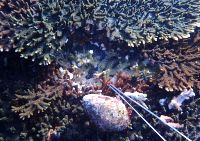 このオニヒトデなんですけど、サンゴの裏に隠れ