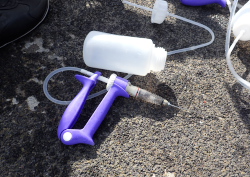 オニヒトデの駆除には酢酸注射を使います。