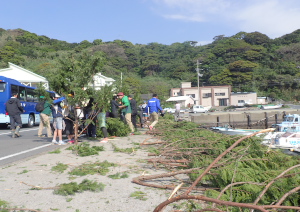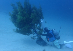 柏島ではアオリイカの産卵床に松の木を使います。