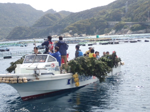 いよいよ本番のアオリイカの産卵床の設置です~。