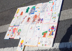 切り終わったら、そこに小学生が一人、一人丁寧に絵や願いを書いてもらっているプレートを枝にくくり付けていきます。
