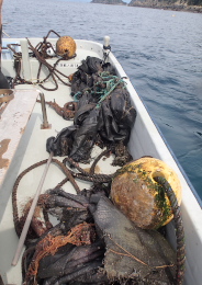 イカの産卵床回収。
