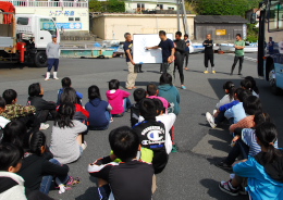 まずは黒潮実感センターのセンター長からの説明を受ける小学生たち(*^_^*)