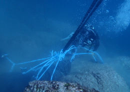 アオリイカ産卵床の設置作業