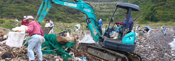 ハンパない漂流物がこの竜ノ浜に流れ着くのでそれをひたすら拾って集めていく感じです。大月町役場の職員さんやら建設業者さんなんかも駆り出されてて、手におえないサイズのゴミは建設業者さんの重機でごっそり!おかげで作業もスムーズに進んでます。
