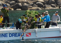 ダイビング部会にももちろん声が掛かるので出動!って言ってもなぜGWのこのタイミング?と思いつつも柏島のお偉いさん達が決めちゃってることなので素直に作業開始です。