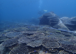 何をするのかと言うと魚の数やウニの数を数えたり、珊瑚の成長調べたり、地質を調べたりします^^