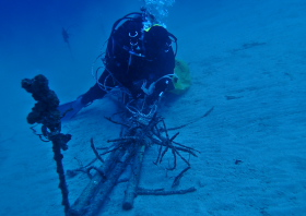 係留ブイの修繕作業