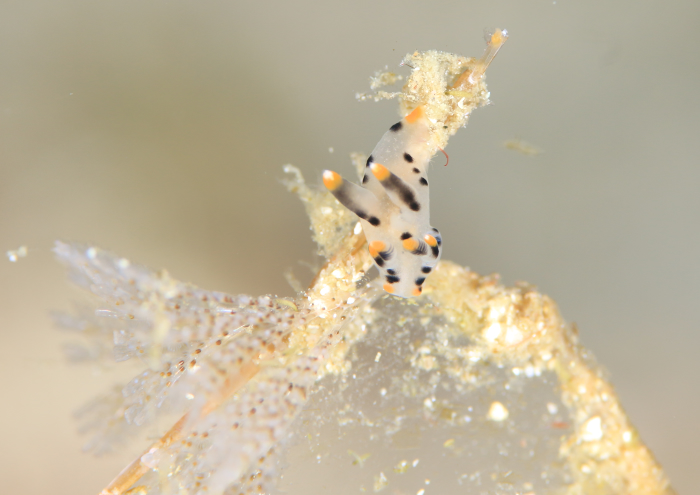 リクエストのコケムシに付くツノザヤウミウシは近くに2個体。探せばもっと居そうな感じでした。