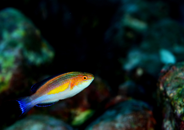 近くにオシャレハナダイやスミレナガハナダイ、ハナゴンベ、クジャクベラ、ツキノワイトヒキベラなどの綺麗な子が盛りだくさん!!
