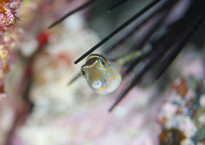 奥にも逃げ場がなかったりすると、ガンガゼの針の隙間をおどおどしながらウロウロ。