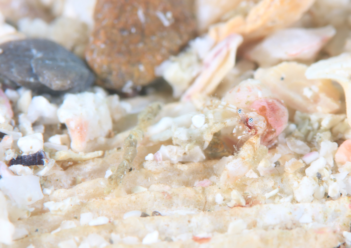 チゴツノヤドカリは貝殻含めて1cmあるかないかで