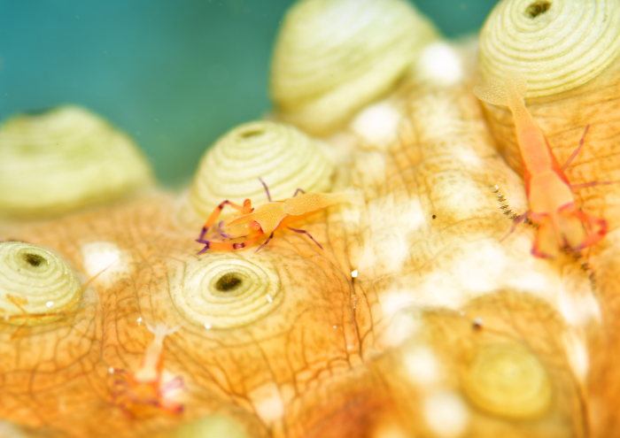 ウミウシカクレエビが一個のナマコに