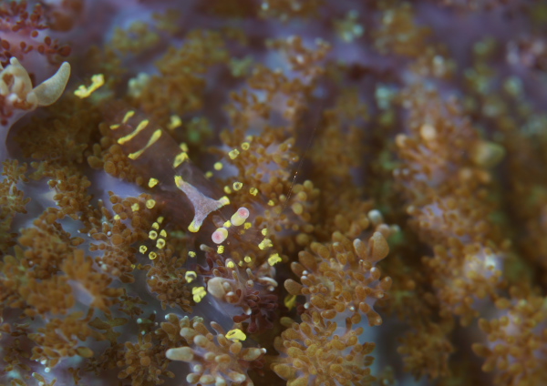 こちらも埋もれてしまうと撮りにくい・・・イソギンチャクモドキカクレエビです。