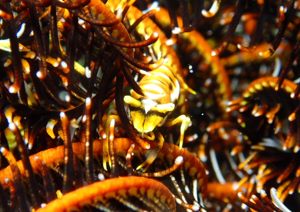この色のウミシダには割と高確率で居てるバサラカクレエビ。
