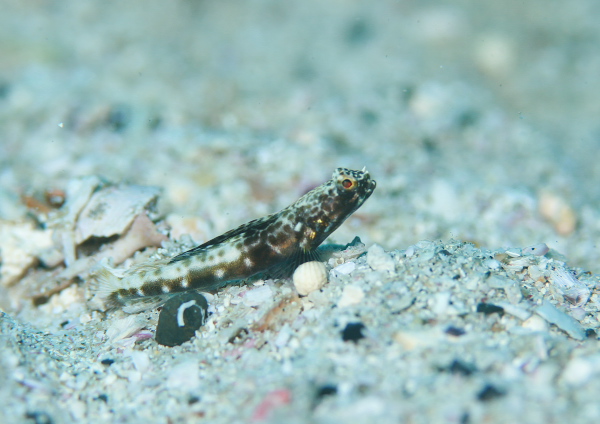 そのまま砂地を移動してると、少し先に黒いハゼが!!しかもホタテじゃない!?