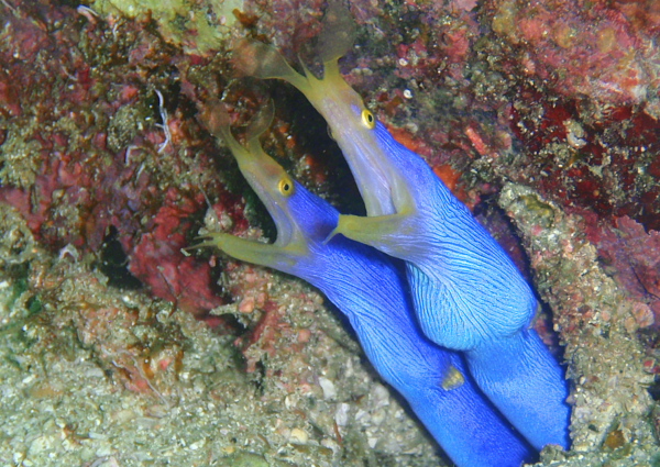 ウツボって台風前になると、1つの穴に身を寄せ合ってたりするんですけど、台風過ぎ去ったあとも気に入ったらしく、2匹一緒に暮らしております(*^_^*)