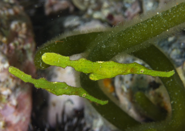 最近緑のミルが浅場にたくさんあるのですが、それにカミソリウオのペアがついてました♪♪