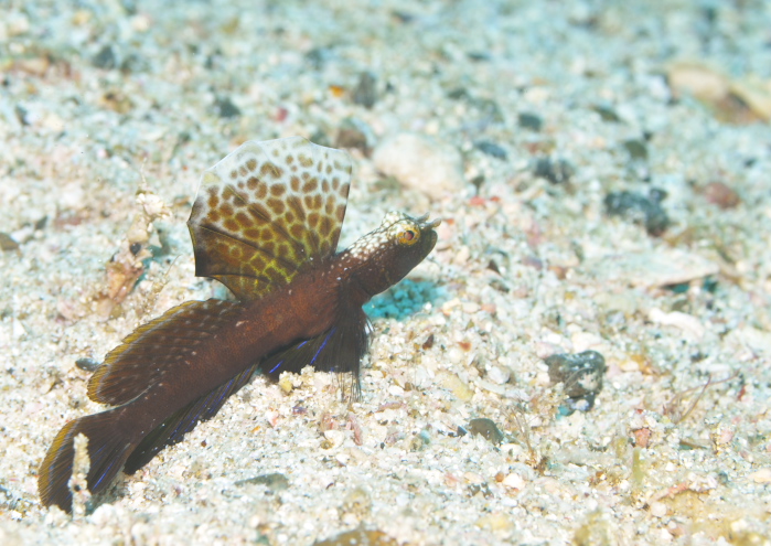 ヤシャハゼと同じく人気のホタテツノハゼですが、最近このハゼの好む環境が分かってきたような?気がして楽しんでます♪でも問題は見つけてからなんですよね!ヒレを全開にして欲しくてライトで挑発したりしますが、そのさじ加減が重要ですね。