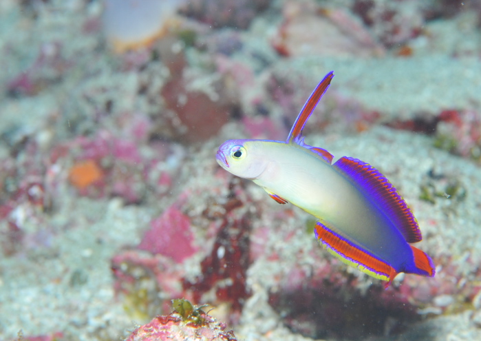 最後はアケボノハゼ。いくつかのポイントで観察できますが、ペアで出ていることもありますよ。アケボノハゼを命名されたのは上皇陛下というのは有名な話ですが、他にもギンガハゼやニチリンダテハゼなどもそうですよ~みんな素敵な名前ですね。