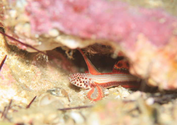 柏島はヤシャハゼやネジリンボウ、ヒレナガ、キツネメ、ホタテなど沢山のハゼが出るので引っ込ませるのを気にすることなく近寄って写真撮ったり観察したりでき引っ込ませてもすぐ別の個体が見つかります~(^_-)-☆