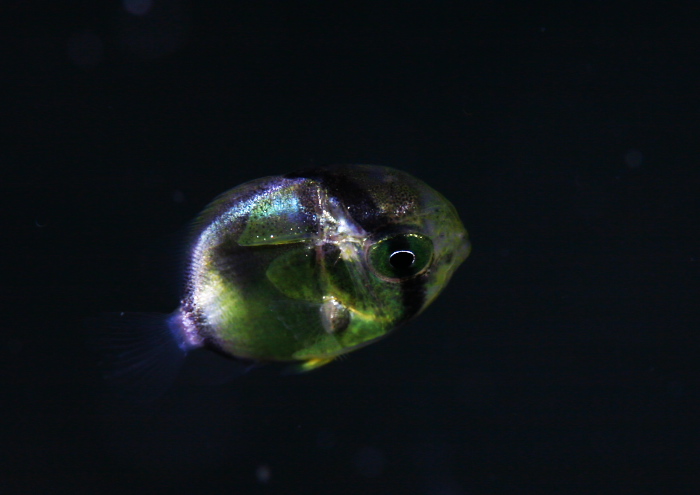 ゴカイ、アミの中に混じって、カニ、エビの幼生やらトノサマダイの稚魚と思われる魚、カレイの稚魚やダンゴイカなど大光量の光に集まってきてました~。