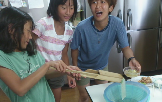 パラディでもところてん、始まっています。みんなで採ってきた天草を、お母さんが干して作る、パラディのところてん(*^_^*)。毎年、好評でゲストのみなさんにも喜んでいただいています。お母さんのところてんは、この白さが良いですね♪ 高知県では夏になるとよく見かけるところてんですが、これだけ白いものは珍しい! その違いは、さらす回数によるのだとか。作るのには、少々手間がかかりますので、食べてみたい方はダイビングご予約時に、一緒に申し込んでおいてくださいね(^^♪。
