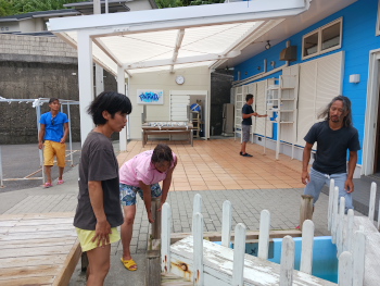 店も台風に備えて、いろいろと片付けが進んでいます。