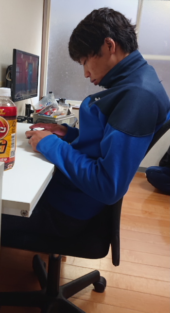 先日のこと・・部屋作りしてくれていた倉松君も上着を脱ぎ、半袖になり、最後には冷房をつけていました(笑)