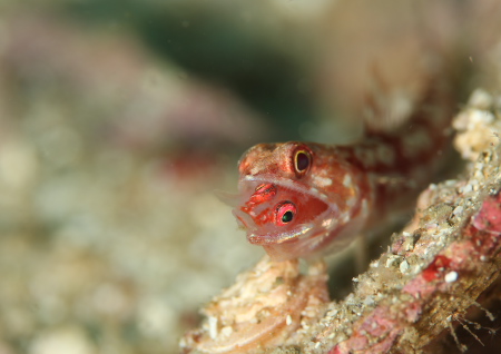 ウミタケハゼがエソの被りもんしてます(笑)・・・・いや。ハゼにとっては笑いごっちゃない状況です。。。。