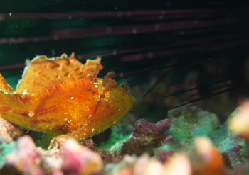 浅場でハダカハオコゼが、サンゴの中でゆらゆら揺れていました。