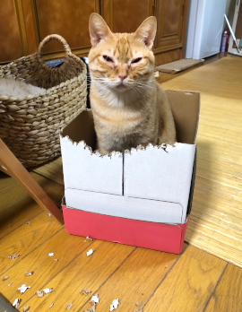 写真は大好きな段ボールを夜な夜な、千切っているところ・・・