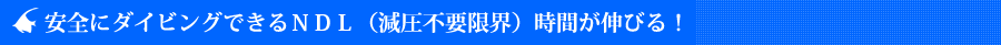 「あ~もう時間が、とか、まだ撮りたいのに・・・」といったダイビングならではの悩みともうさようなら~!医学的なメリットを簡単に言い換えると「空気と同じ深度・時間で比べれば、減圧不要限界時間が伸びる」ということ。ってことは水中での時間がたっぷり!ゆっくり見たり、じっくり撮ったり、とても嬉しいメリットがあります!