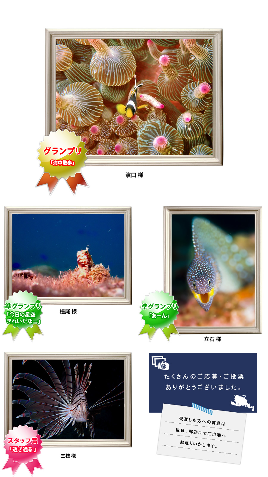 スタッフ賞 (1点) パラディでの、マンツーマンガイド3ダイブの無料チケットプレゼント!(但し繁忙期は除く) - 賞品発送
