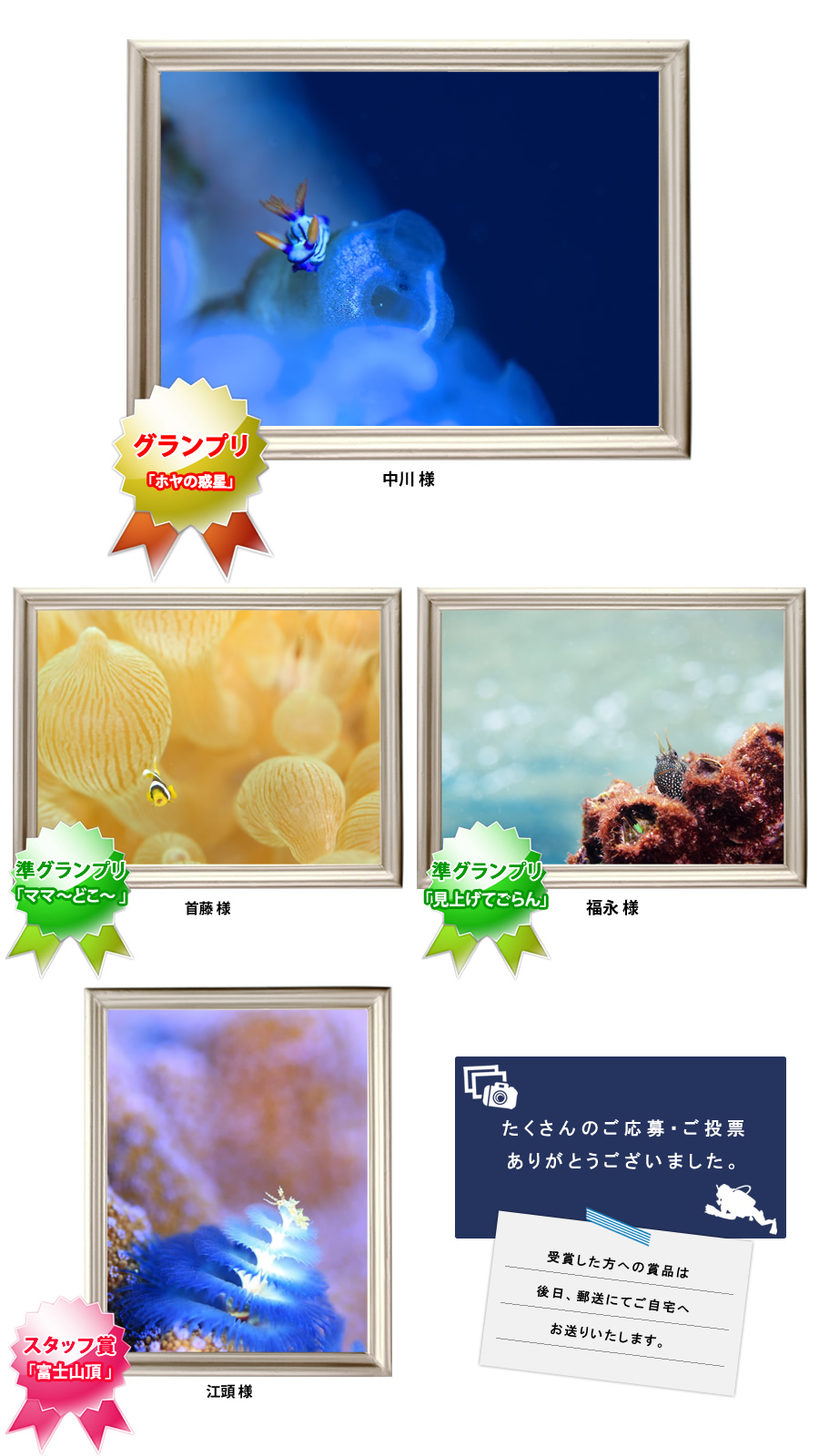 準グランプリ(2点) パラディでの、3ダイブ&昼食の無料チケットをプレゼント!