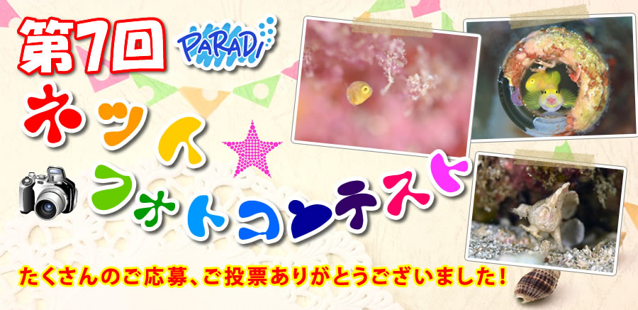 - グランプリ (1点) パラディでの、プチ旅行をプレゼント!(3ダイブ+2ダイブ&宿泊+全ての食事付き)